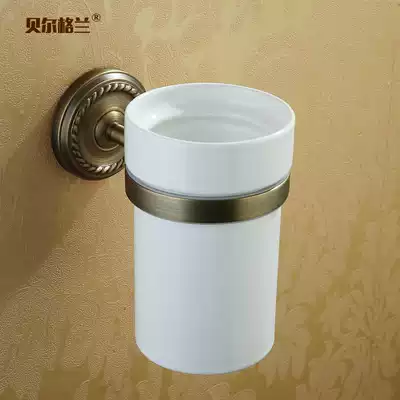 Retro hardware bathroom pendant all copper European antique dressing dressing room toilet brush shelf white ceramic cup holder