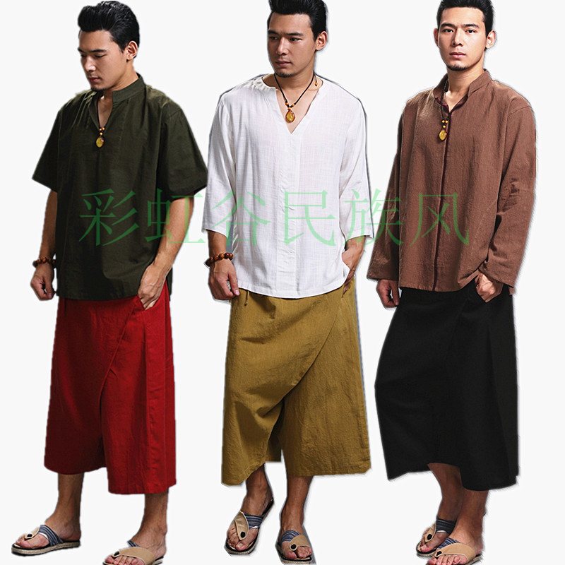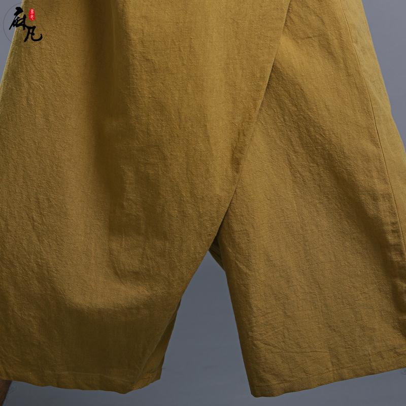 Original retro-literary crotch Seven pants Chinese wind shorts half leg pants men broad legs pants personality skirts