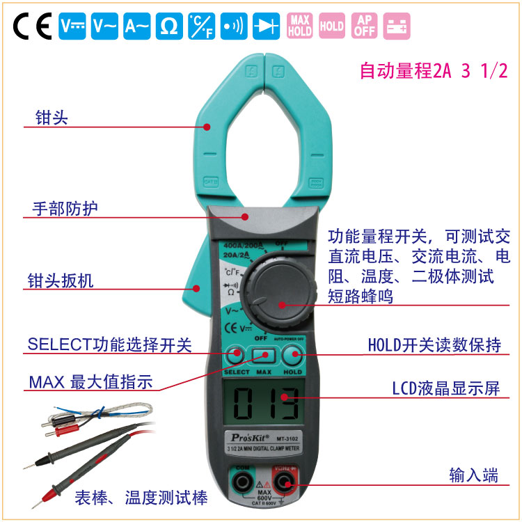 Taiwan's Baoworkers Digital Digital Pincers Form current table Wanuses electric meters Number of electric meters Pliers Shaped Table Universal Table Hook table MT-3102