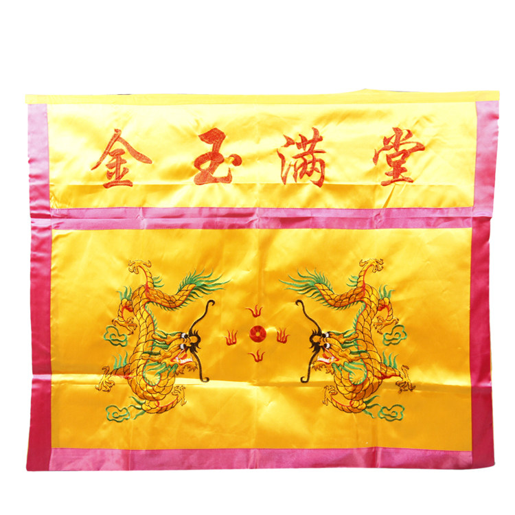 A Buddha hall decoration Satin red edge double dragon table circumference Responsive 1 5 beige red embroidered dragon table circumference