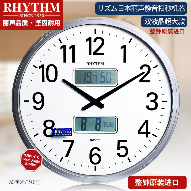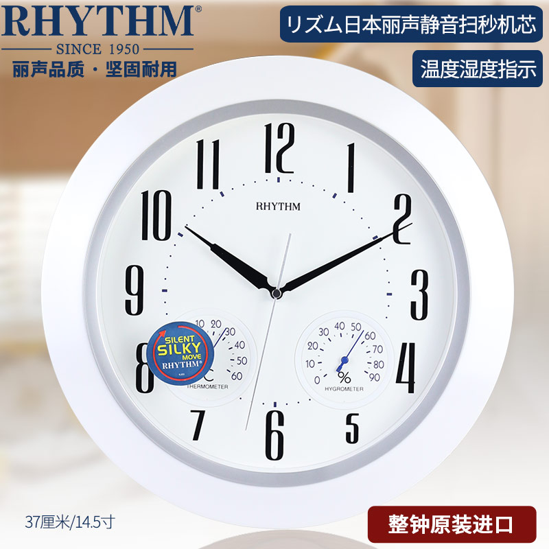 RHYTHM Li Sheng wall clock watch Living room office European classical hygrometer LCD solid wood CFG901