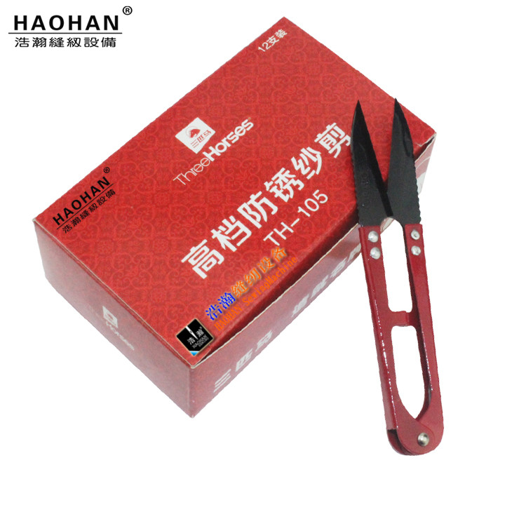 New three-horse rust-proof yarn scissors 105 type small scissors thread cutting cross stitch household front steel U-shaped scissors