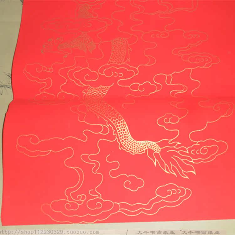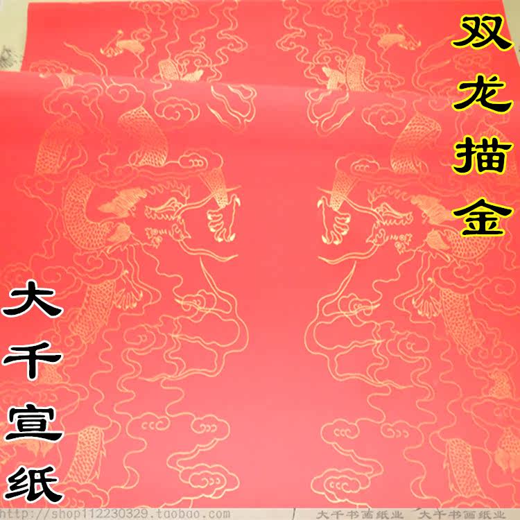 Clip Jiang Xuan Paper Four Feet Years Red Xuan Paper Sprinkle Gold Double Dragon Sketching Gold Calligraphy Creation Exclusive Couplets Couplets Paper
