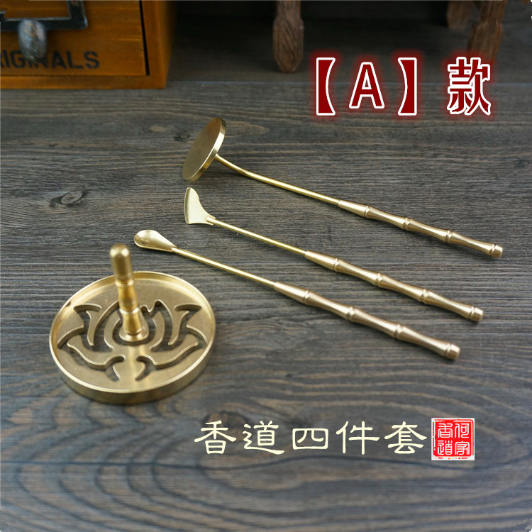 Incense tools Four-piece set Pure copper incense seal set Agarwood supplies and utensils Gray pressure incense spoon incense shovel Incense seal Incense seal