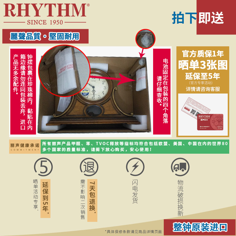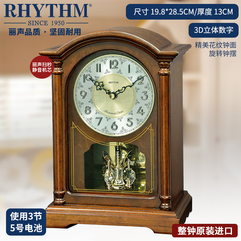 RHYTHM Lisheng table clock Bedroom living room European retro classical table clock creative whole point time CRH165
