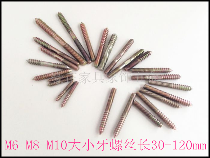 Size tooth double head screw rod furniture embedded screw m8 bolt double head tooth screw solid wood disassembly screw