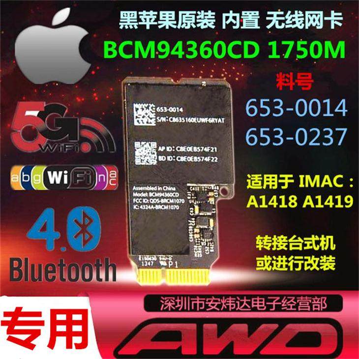 Apple IMAC A1418 A1419 BCM94360CD AC 1750M Wireless Network Card 40 Bluetooth