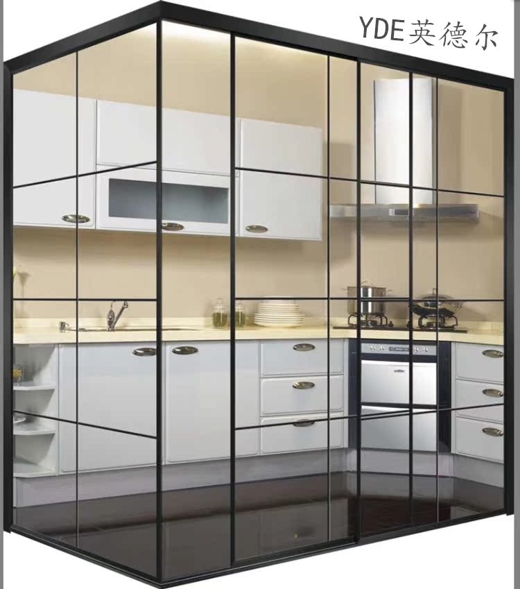 Hangzhou Custom Hollow Double Layer Tempered Glass Shifting Door Balcony Kitchen room Room Bookroom Indoor Soundproofing and push-pull partition