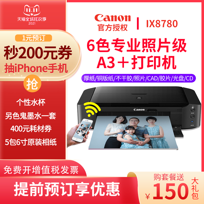 Canon IP8780 Printer Inkjet 6 Color Ink Cartridge 300 g Coated Thick Paper Sticker Mobile Phone Wireless Wifi Connect for 6880 Mobile Office Merchants with Photos A3 Color A4 Photos 6780