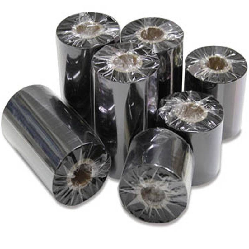 High quality whole resin carbon with 110 width axis core barcode printer with printed dumb silver PET label 300 m long