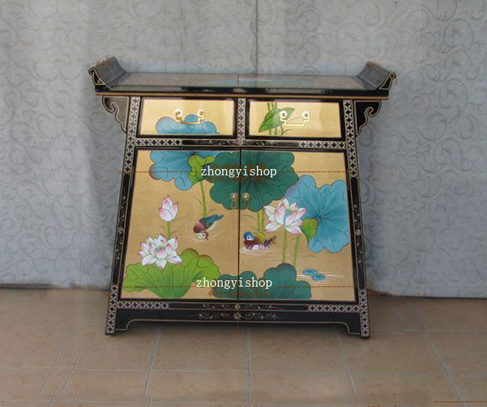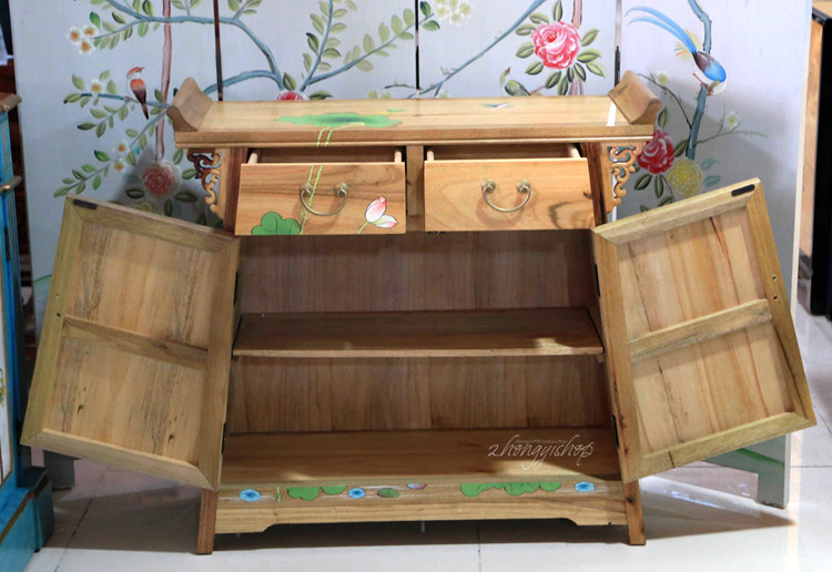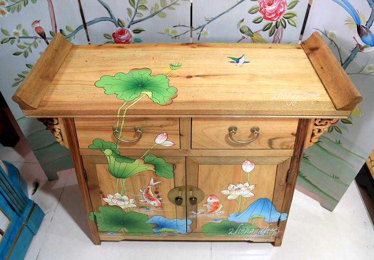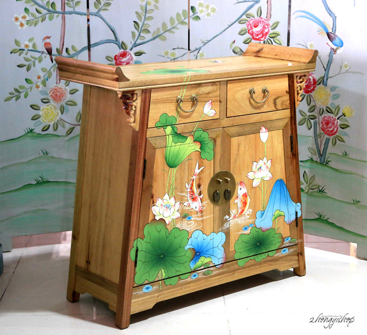 New Chinese hand-painted furniture warp masalty locker shoe cabinet two-door cabinet Lotus carp