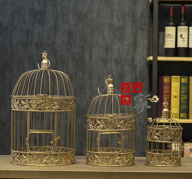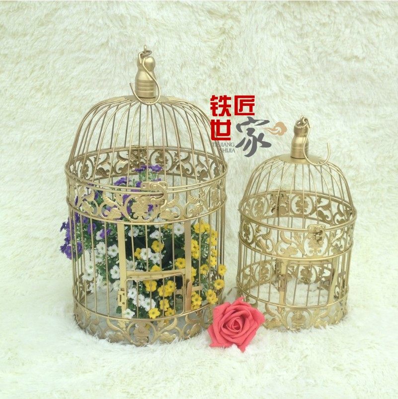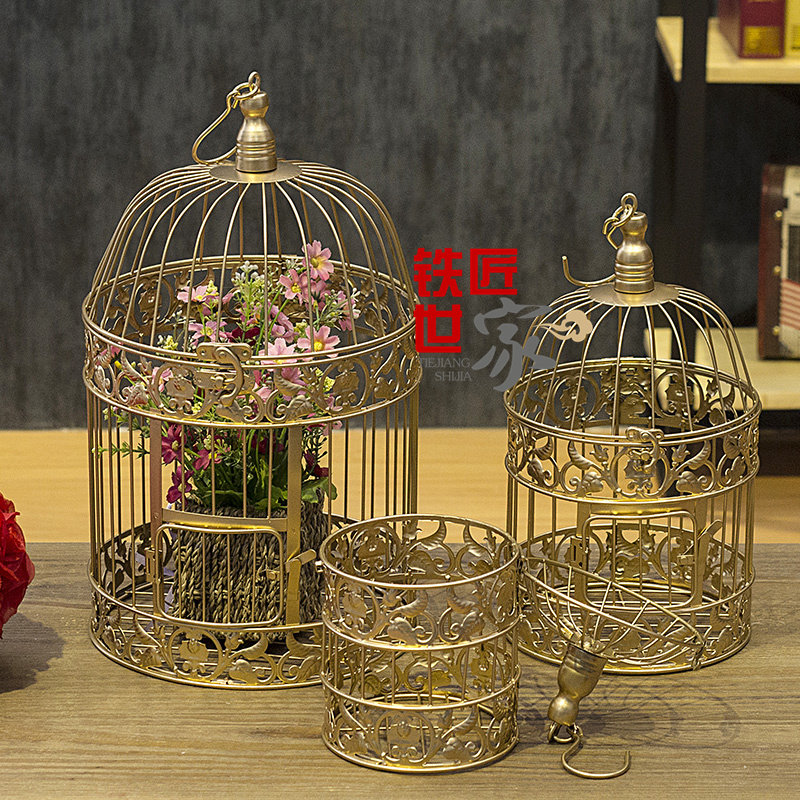 Decorative Bird Cage Large Number Golden Retro Iron Art Bird Cage Pendulum Wedding Wedding Shoes Bird Cage Floral Cage Floral
