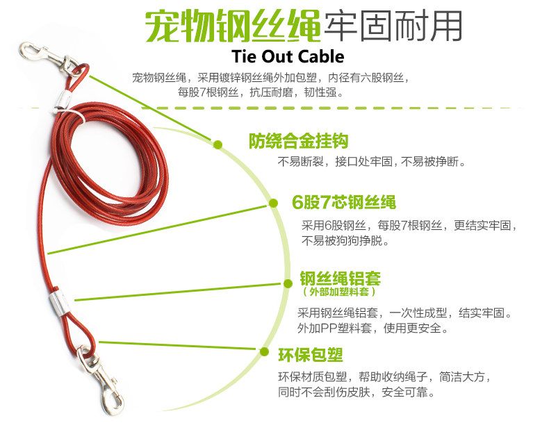 Three-meter blue wire diameter 5 mm single wire rope 20 kg inner dog 3-meter red wire diameter 6 mm Strengthening of single wire rope 40 kg inner dog 5 m blue single