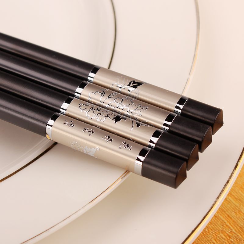 Home Hotel Dining Room Applicable Non-slip Flowers Open Rich Expensive Home Suit 10 Double No Painted Wax Alloy Chopsticks