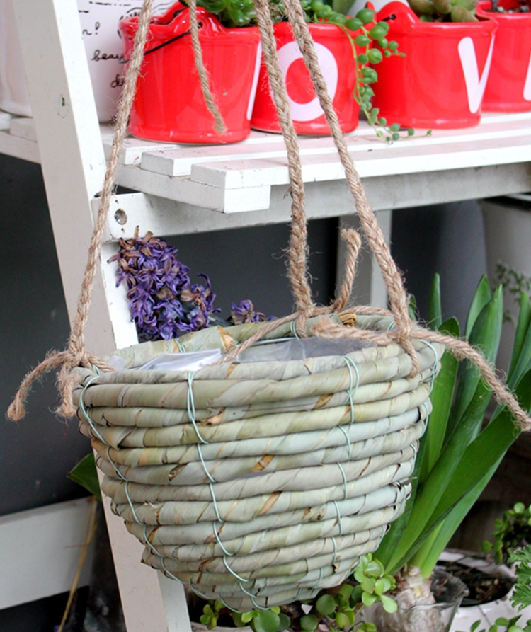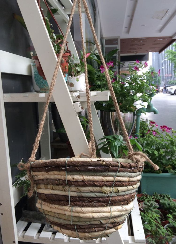 Hanging plant floral corn leather hemisphere hemp rope hanging basket flower pot with waterproof layer 5 up