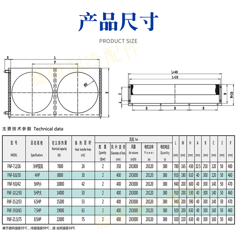 Keweili 6 5 hp condenser evaporator radiator air-cooled cold copper tube heat exchange radiator refrigeration accessories