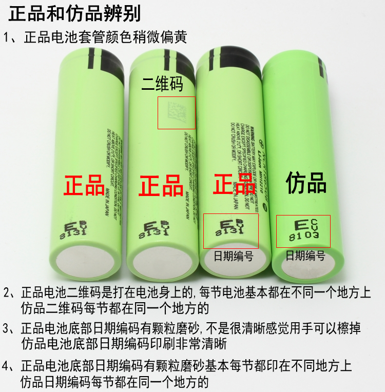 Original loaded Panasonic 3400mAh18650 Lithium battery 3 7V Charger Pointed with protective plate 3200AH