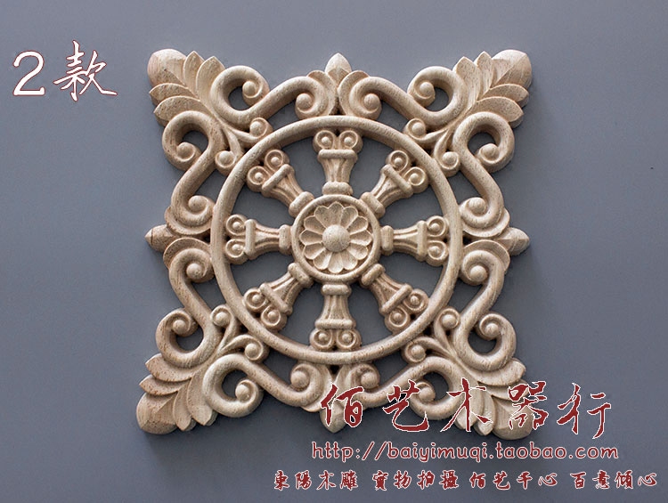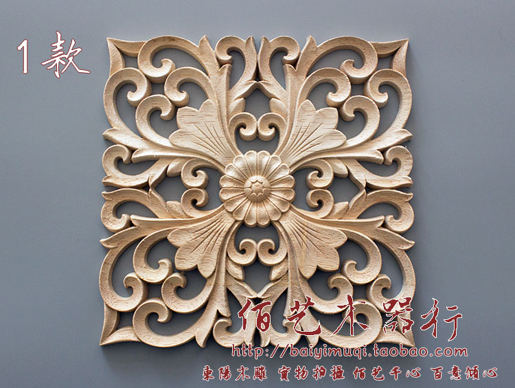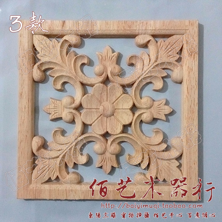 Dongyang wood carving piece European hollow square Solid wood corner flower decal patch carved wood flower door flower cabinet flower