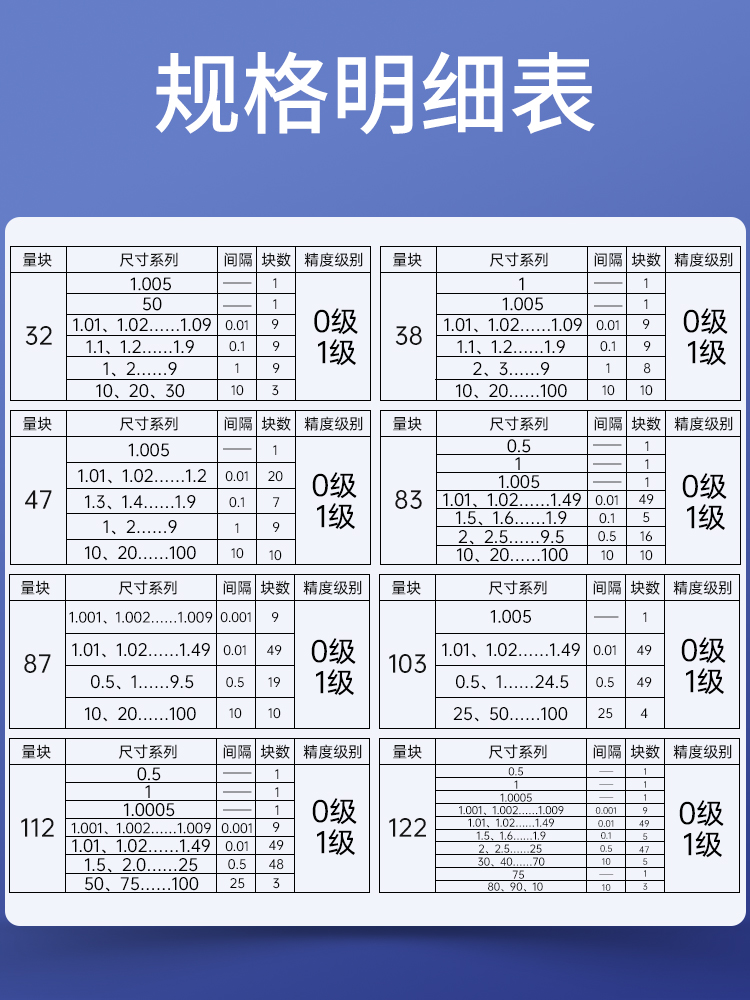 32 blocks 1 level (accuracy 0.01) 32 blocks 0 level (accuracy 0.001) 32 blocks special 0 level (metering preferred) 38 blocks 1 level (accuracy 0.01) 38 blocks special 0 level (accuracy 0.001) 38 blocks special 0 level (metering preferred) 47 blocks 2 level (accuracy 0.02) 47 blocks 1 (accuracy 0.01) 47 blocks special 0 level (accuracy 0.001) 47 blocks special 0 level (metering preferred) 83 blocks special 0 level (accuracy 0.001) 83 blocks special 0 level ( Metering Preferred) 87 Blocks Grade 2 (Accuracy 0.02) 87 Blocks Grade 1 (Accuracy 0.01) 87 Blocks Grade 0 (Accuracy 0.001) 87 Blocks Special Grade 0 (Metering Preferred) 103 Blocks Level 2 (Accuracy 0.02) 103 Blocks Level 1 (Accuracy 0.01) 103 Blocks Level 0 (Accuracy 0.001) 103 Blocks Special Level 0 (Metering Preferred) 112 Blocks Level 2 (Accuracy 0.02) 112 Blocks Level 0 (Accuracy 0.01) 112 Blocks Special Level 0 ( Accuracy 0.001) 112 Blocks Special Level 0 ( Metering preferred) 122 blocks 1 level (accuracy 0.01) 122 blocks 0 level (accuracy 0.001) 122 blocks special 0 level (metering preferred)