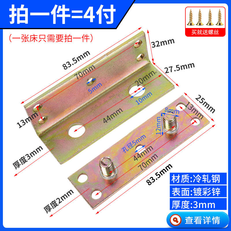 Solid wood bed hardware hinged furniture fastener accessories bed body connection fixing piece artifact bed frame rubber chain hook angle code