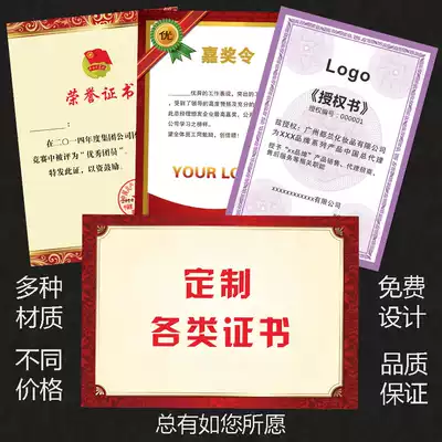 Certificate of certificate production of honor certificate inner core customized closing appointment book customized can be printed creative kindergarten award paper commendation letter shell bronzing authorization certificate award-winning equity certificate customization