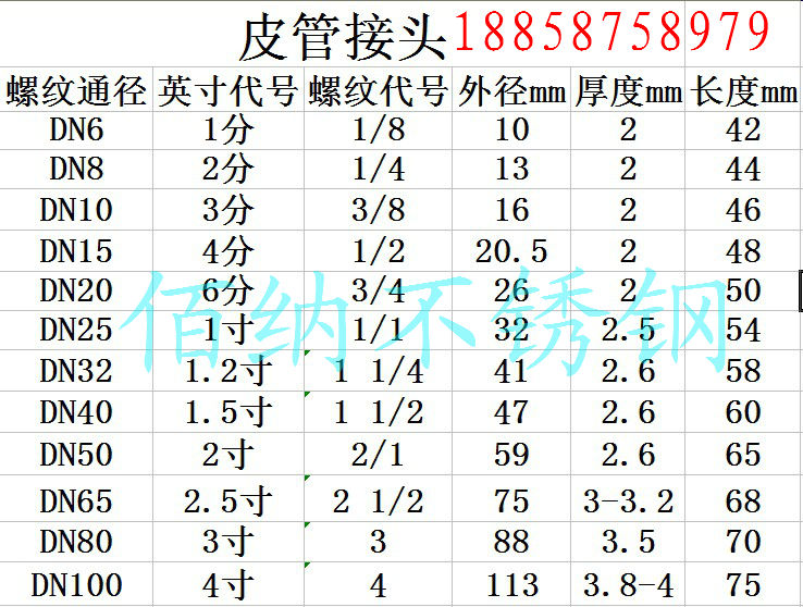 Stainless steel positive 304 hose connector pagoda connector outer wire leather pipe water nozzle connector tube pagoda outer wire connection 4 points