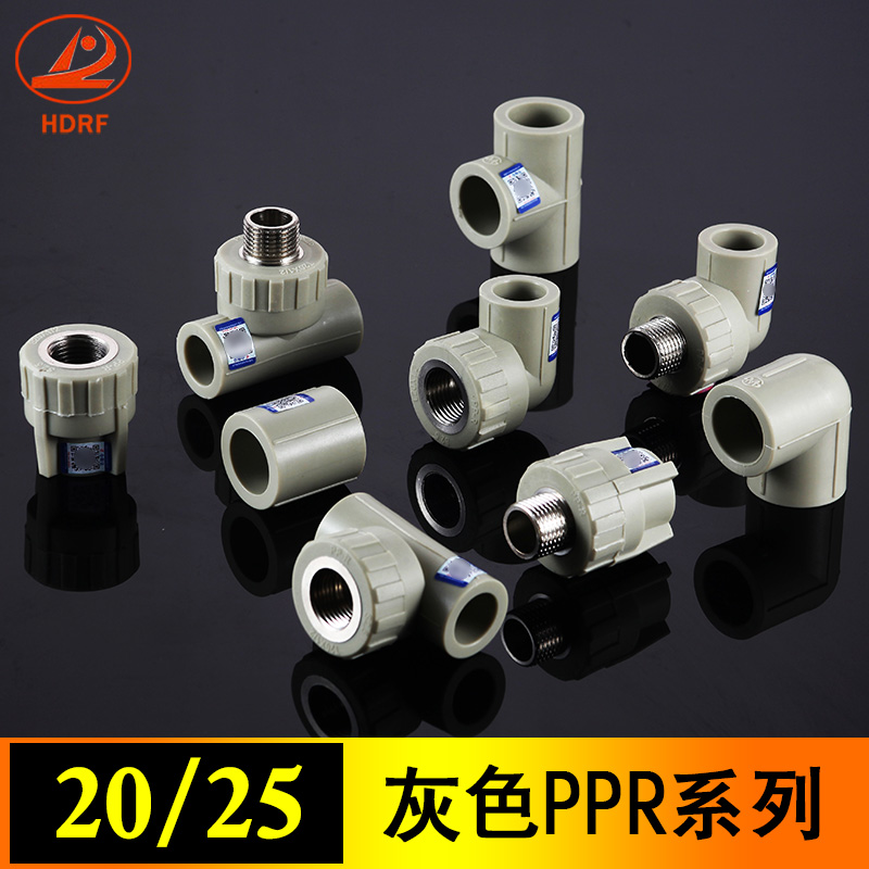 HDRF gray PPR pipe fittings Environmental protection 20 25 direct elbow TEE inner wire outer wire pipe fittings accessories