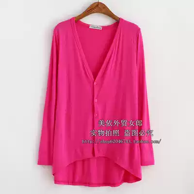 Korean version of women's spring and summer modal large size knitwear jacket front short and back long long version long long sleeve irregular cardigan