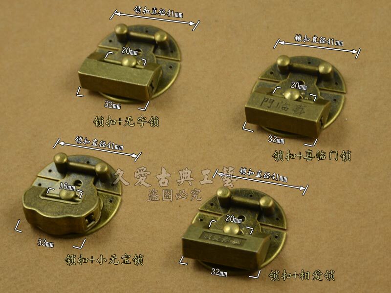 Antique lock box buckle buckle wine box gift box round lock buckle with antique lock Chinese old key lock small copper lock padlock