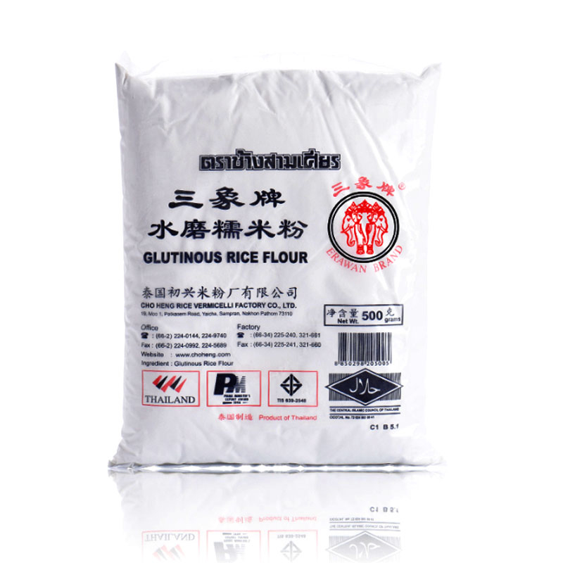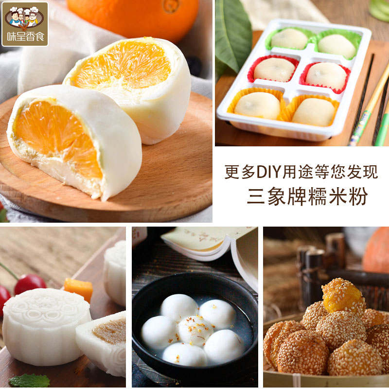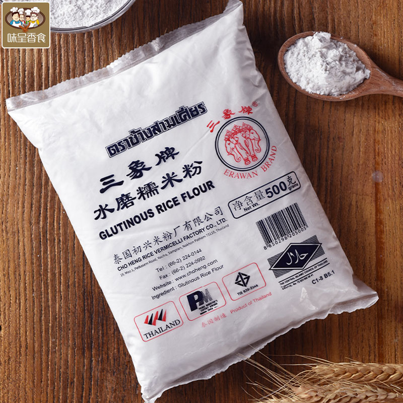 Three Elephant brand water milled glutinous rice flour Household ice skin moon cake Xuemei Niang Glutinous rice cake Pure glutinous rice flour flour baking 500g