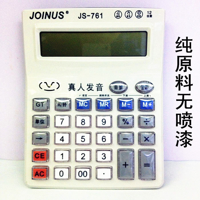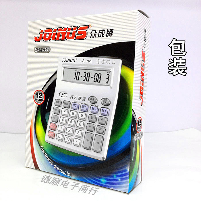 Human voice calculator, transparent crystal keys, color white, 12 digits, 761