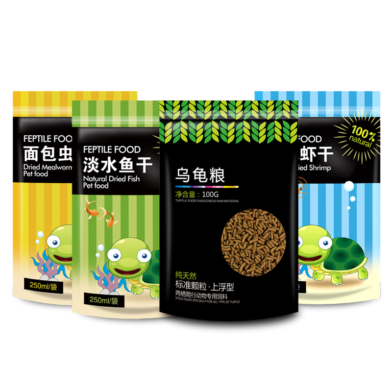 Dried fish 1 package of dried shrimp 1 package of dried insects 1 package of young turtle food 100 grams 1 package of 100 grams of granules 1 package of 100 grams of granules 2 packages of 40 grams of granules 4 packages of 100 grams of granules 4 packages of dried fish, dried shrimp and dried insects