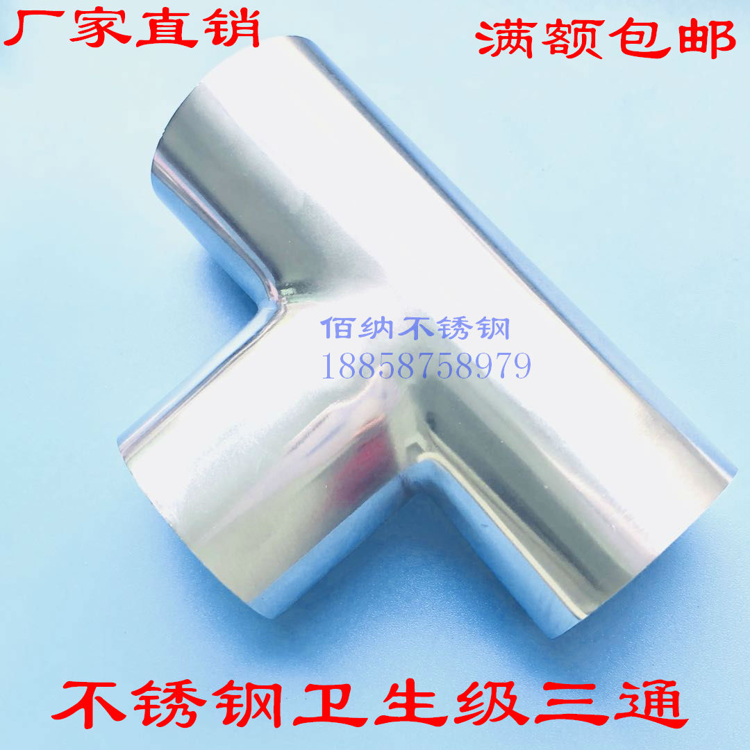 Sanitary tee 304 welded tee T-type double mirror tee finely polished equal diameter reducing pipe fittings food tee