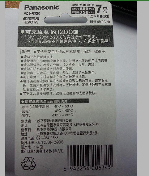 Panasonic 7 Number of nickel hydrogen rechargeable batteries 800MAH Panasonic rechargeable battery quality assurance RMB12 section