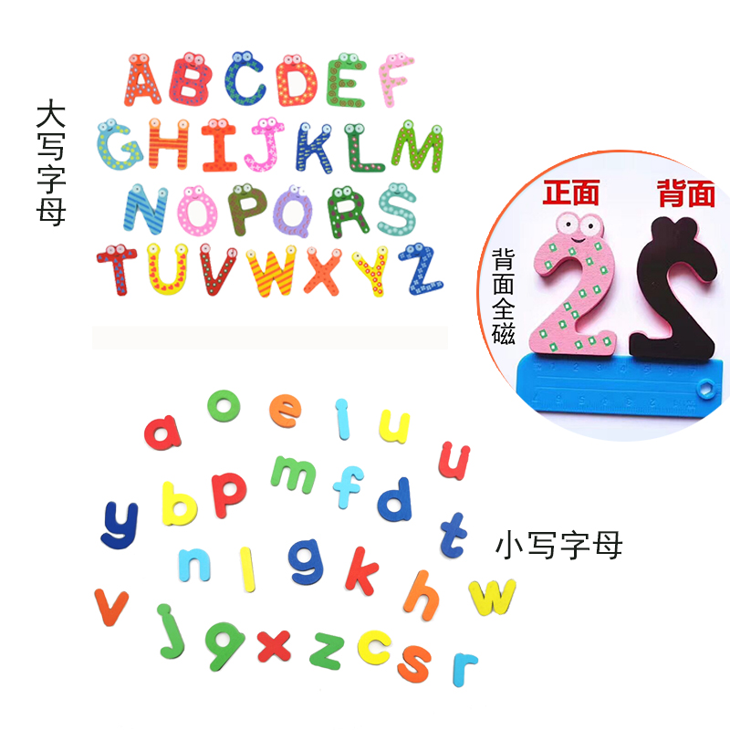 12 cartoon dolls, back magnets, 15 numbers, back magnets, 26 uppercase letters, back magnets, 27 lowercase pinyin, back magnets, numbers, capital letters, back magnet numbers, lowercase letters