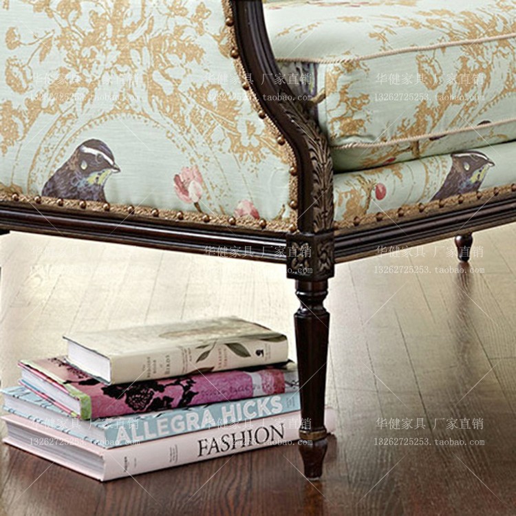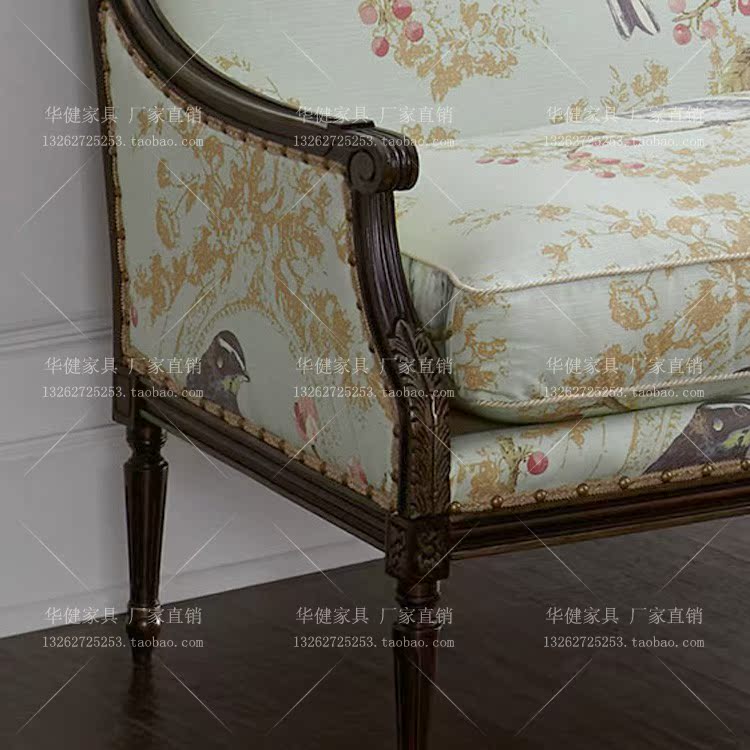 Spot double sofa small family living room three American full solid wood carved black retro old can be customized