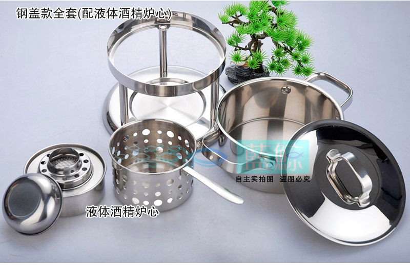 Blue Whale European-style small hot pot thickened stainless steel liquid alcohol stove household single self-service hot pot shop commercial