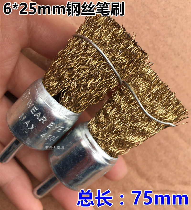 Steel wire pen brush brass wire grinding head polished rust removing deburring steel wire with handle electric grinding wheel brush handle diameter 6mm