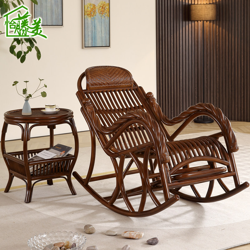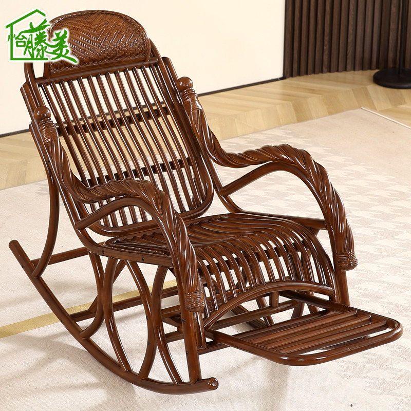 Balcony Teng Chair Vine Chair Sloth Man Rocking Reclining Chair Old Old Man Upscale Real Rattan Weave Carefree Chair Home Rocking Chair-Taobao