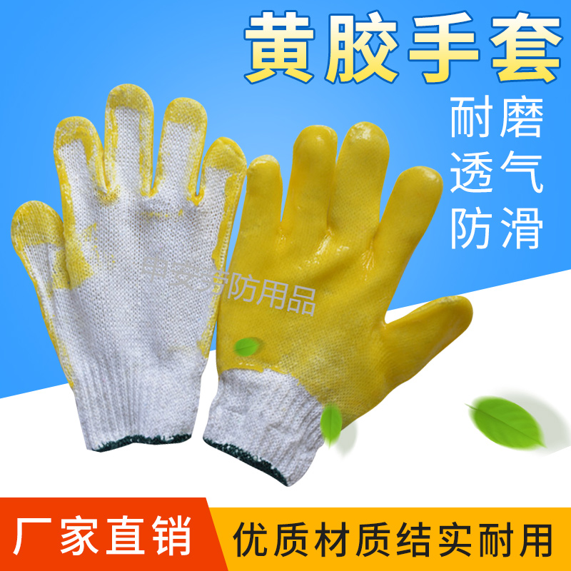 Glue-coated gloves, yellow foam rubber, anti-cut, wear-resistant, anti-skid, thickened, hanging glue, labor protection, construction site, handling, white dipping