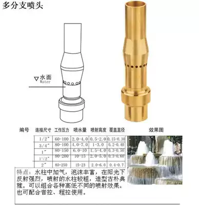 Fountain water column plus bubble brass boutique 6 points champagne foam multi-branch nozzle pool courtyard