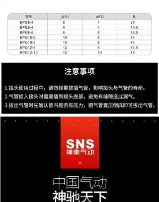 SNS Shenchi plastic straight-through reducer joint clean BPG SPG6-4 8-6 10-8 12-10 12-8