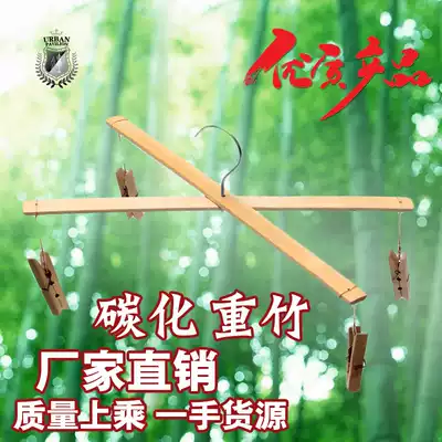 Heavy bamboo trouser rack 4 clips Drying rack Smooth multi-purpose trouser rack Socks rack carbonized mildew-proof cross bamboo trouser clip 5