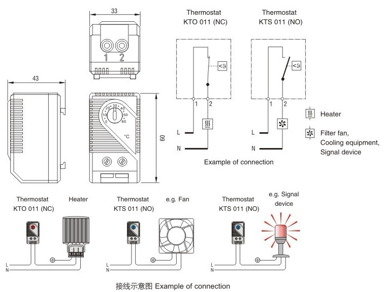 Factory price direct sales thermostat KTS011 adjustable mechanical temperature control regulator normally open temperature control switch