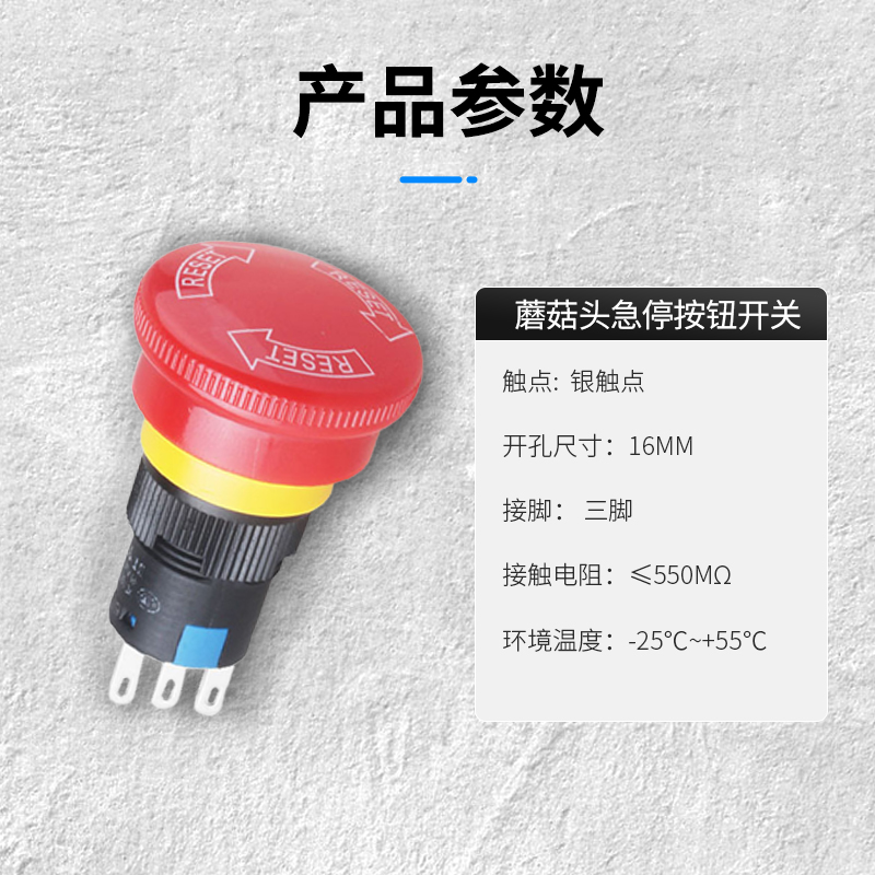 Yongqian LA128AY-11ZS 16mm emergency stop button large and small mushroom head charging pile emergency stop switch