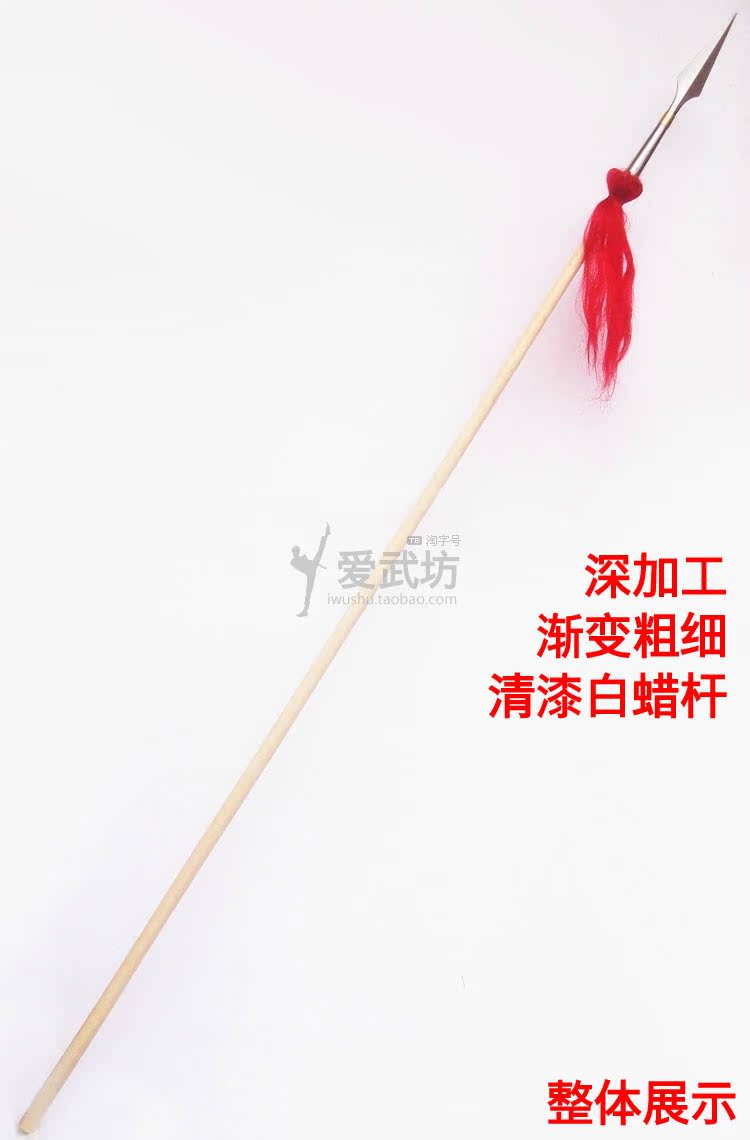 Performing red tassel gun Stainless steel copper hoop Overlord gun head White wax rod gun barrel Martial arts equipment Eighteen weapons