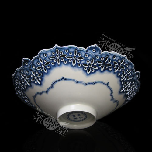 Cunrentang Hand-painted antique blue and white lotus-petal hollow bowl (17 cm)