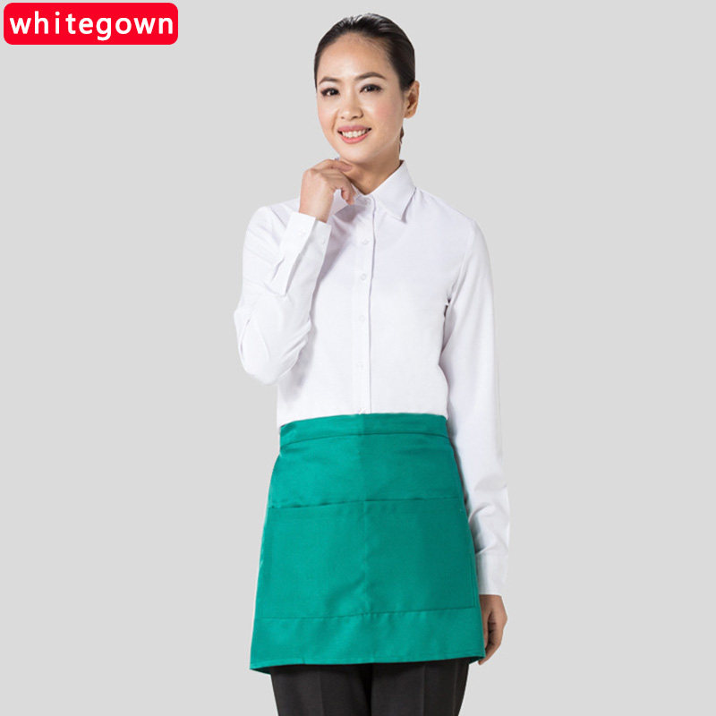WhiteGown half-length short apron mini kitchen oil-proof restaurant hotel chef waiter work apron