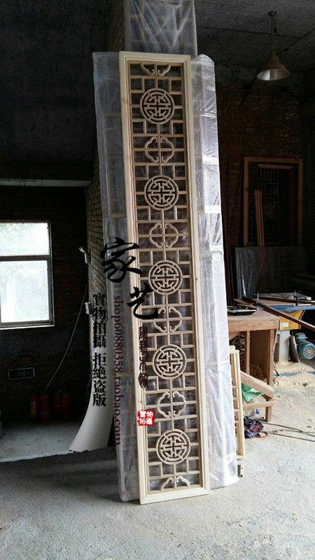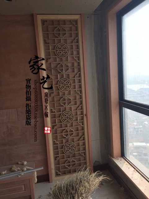 East Yang Wood Carving Chinese Style Furnishing TV Background Wall Solid Wood Hollowed-out Flower Lattice Imitation Ancient Doors And Windows Xuan Guan Partition Screen