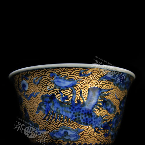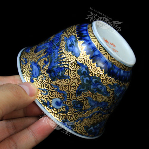 Taiwan Cunren Tang hand-painted ceramic three-cai cover bowl Antique blue and white cloud Phoenix cover cup 210ml large tea cup